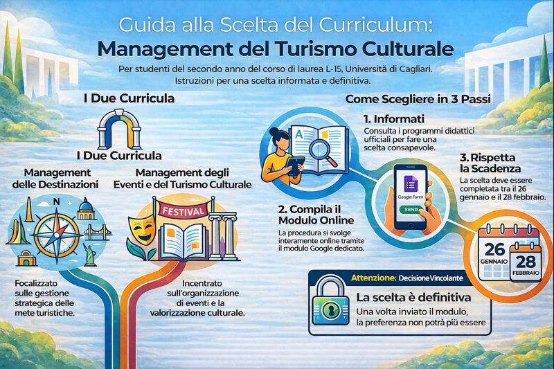 Nei prossimi giorni sarete chiamati a scegliere il vostro curriculum e gli insegnamenti opzionali per il Corso di Laurea in Management delle Destinazioni e del Turismo Culturale (MDTC).